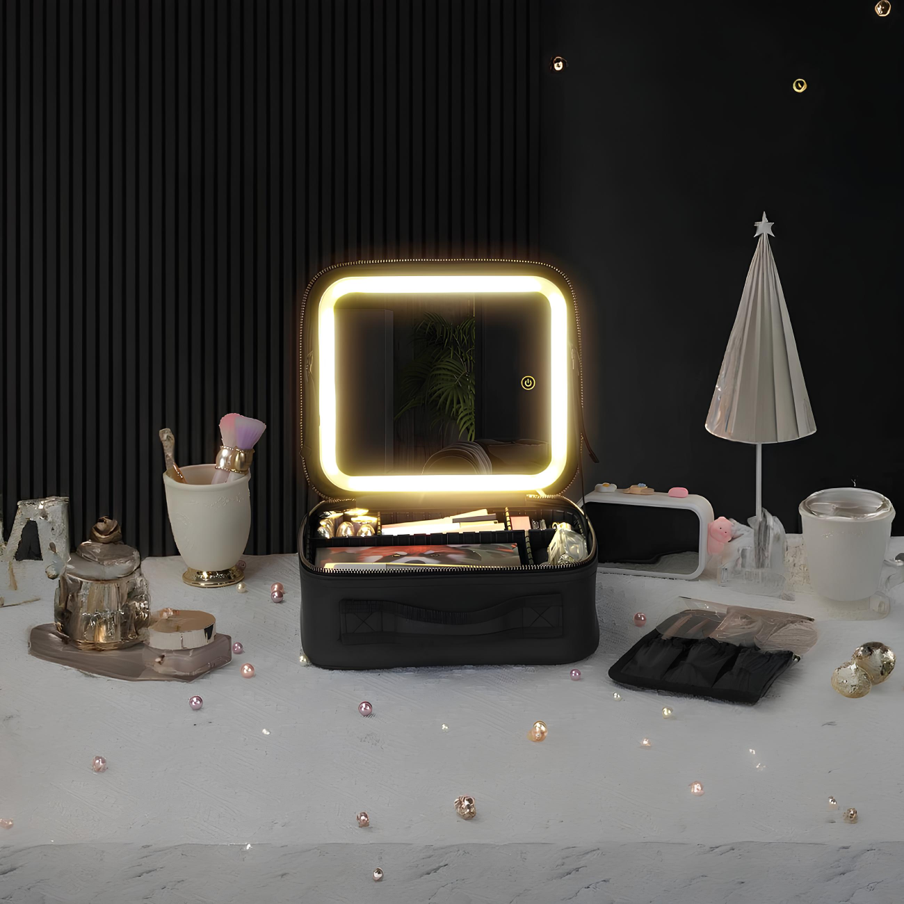 کیف لوازم آرایشی با آینه چراغ دار لمسی Green Lion Makeup Organizer