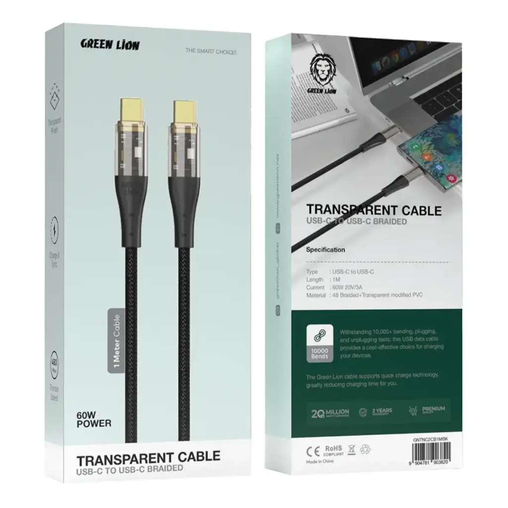 کابل تایپ سی به تایپ سی 60w مدل Green Lion transparent cable