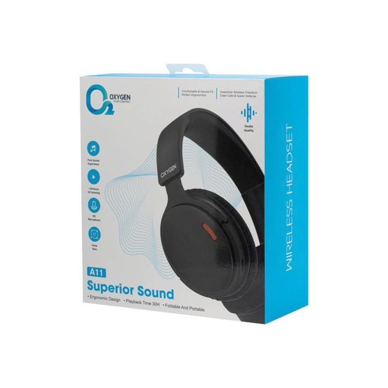 هدفون بیسیم اکسیژن مدل A11 با طراحی سبک، صدای شفاف و قابلیت تماس واضح، همراهی مناسب برای موسیقی و کاربری روزانه است.