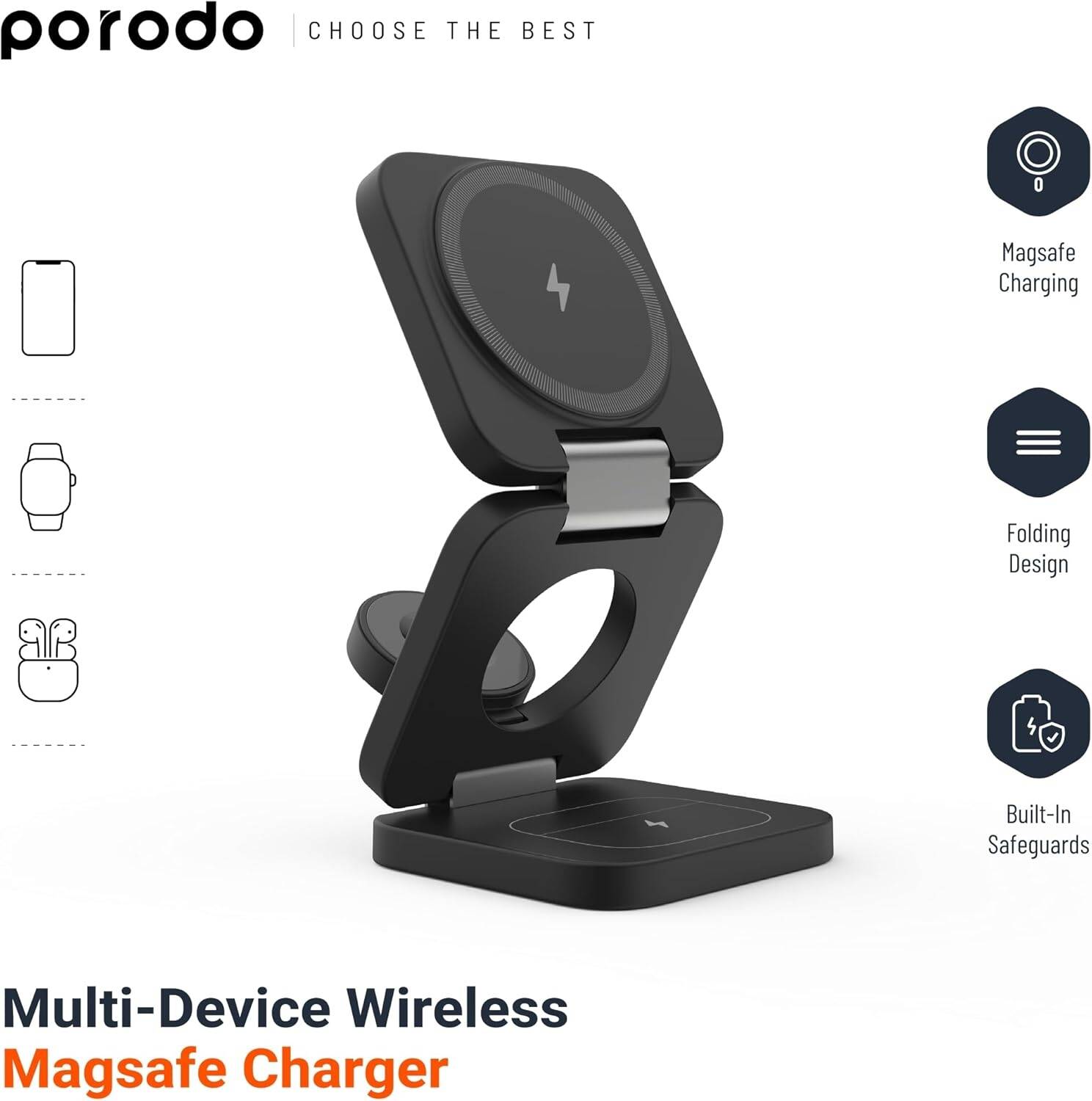 شارژر وایرلس مدل Porodo Multi-Device WIreless Magsafe Charger