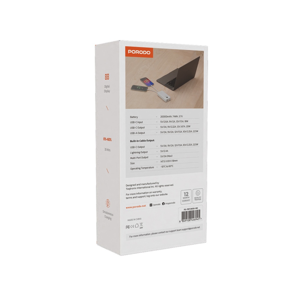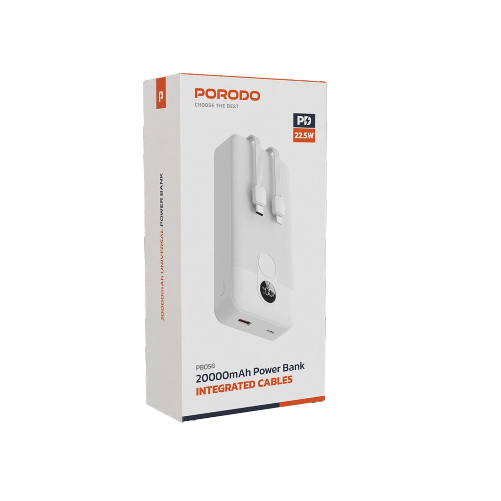 پاوربانک 20000 مدل Porodo PB058 integrated cables