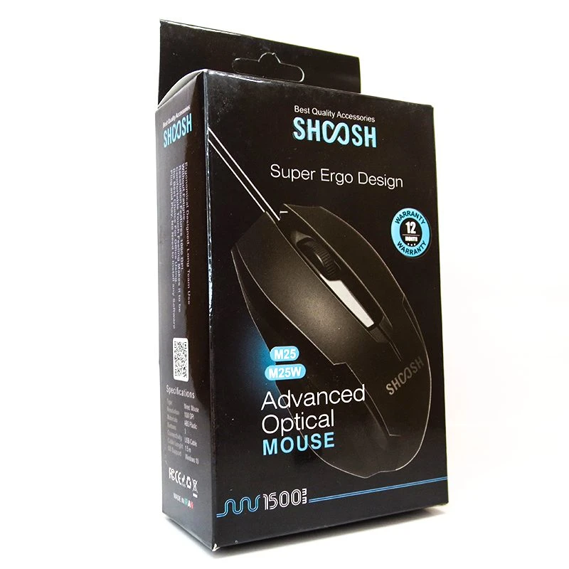 موس سیمی SHOOSH M25 یک گزینه ساده، کارآمد و اقتصادی برای کاربریهای روزمره، اداری و آموزشی است. اتصال سیمی USB آن، عملکردی سریع و بدون کوچکترین تأخیری ارائه میدهد و نیازی به باتری یا شارژ ندارد.